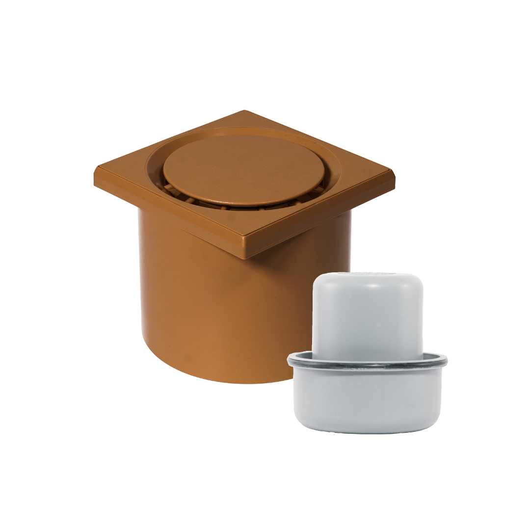 WetFloor Drain 2nd Fix with 110mmx110mm Light Brown ABS Grate